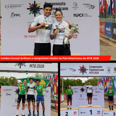 Os irmãos Luiz Cocuzzi e Luiza Cocuzzi deram um verdadeiro show no Campeonato Pan-Americano de Mountain Bike 2026, que acontece entre os dias 15 e 19 de abril, em Encarnación, no complexo Aguavista, no Paraguai. Os atletas conquistaram o topo do pódio na disputa do Cross Country Eliminator (XCE) e se destacaram entre os principais nomes do continente.